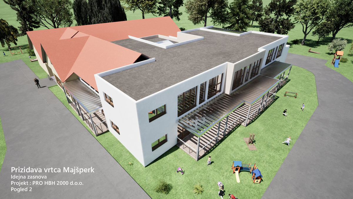 Občina Majšperk je bila uspešna na javnem razpisu za sofinanciranje prizidave vrtca Majšperk s strani Ministrstva za vzgojo in izobraževanje v maksimalni višini 1.683.799,00 EUR. V okviru projekta bomo izvedli dograditev objekta vrtca in preureditev obstoječih prostorov v povečan objekt za 12 skupin otrok, skupne igralnice, zunanje terase in zunanje igralne površine ter prostore za zaposlene. Dograditev vrtca bo potekala v letih 2028 in 2029 po izgradnji novega Centra zdravja Majšperk, kateremu sledi rušitev obstoječega objekta Zdravstvenega doma in na tem mestu dograditev novega vrtca.